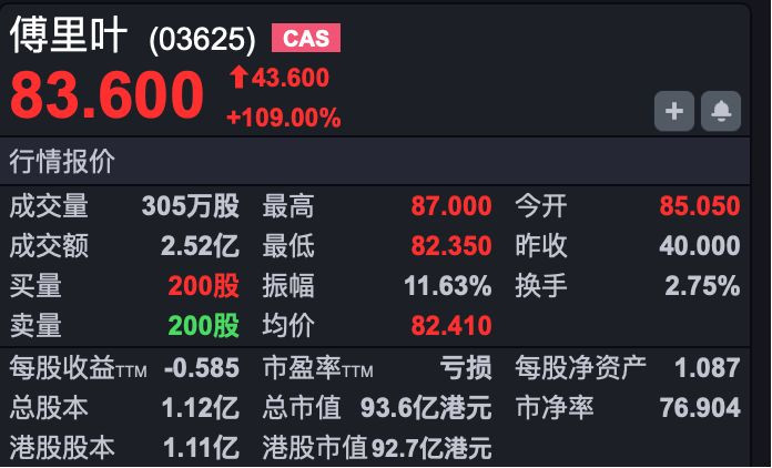 另一只新股傅里叶(HK03625)早盘高开超112%,抑遏发稿依旧涨超109%。