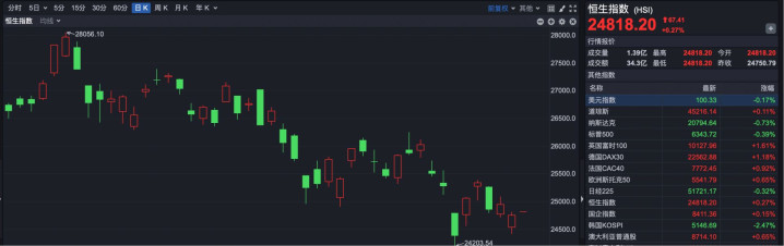 抑遏发稿,恒生指数开盘报24818.20点,高潮67.41点,涨幅0.27%。