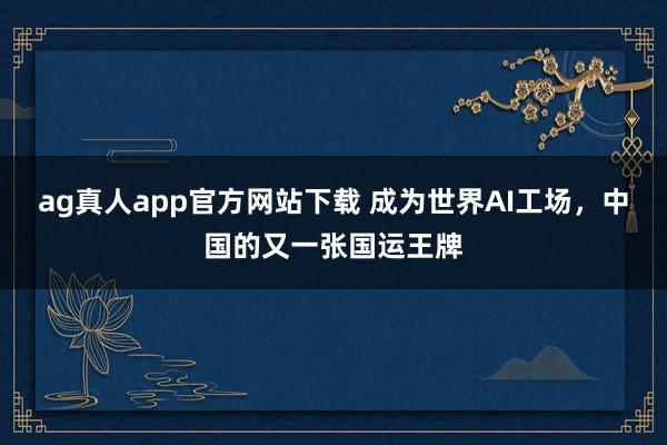 ag真人app官方网站下载 成为世界AI工场,中国的又一张国运王牌