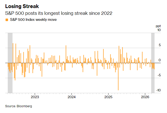 周一好意思股高开低走,抛售潮加重,主要股指录得2022年以来最长周度连跌,因市集担忧中东战事升级——更多好意思军已抵达伊朗,突破风险捏续升温。
