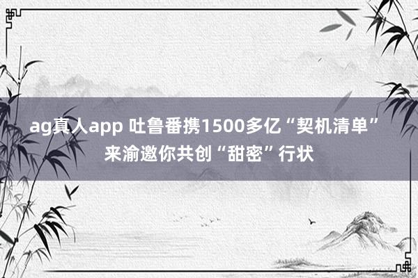 ag真人app 吐鲁番携1500多亿“契机清单” 来渝邀你共创“甜密”行状