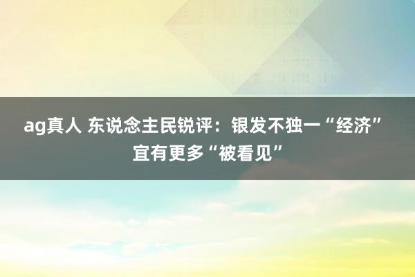 ag真人 东说念主民锐评:银发不独一“经济” 宜有更多“被看见”