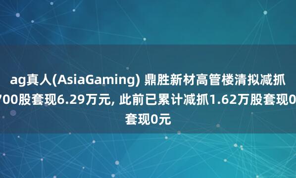 ag真人(AsiaGaming) 鼎胜新材高管楼清拟减抓2700股套现6.29万元, 此前已累计减抓1.62万股套现0元
