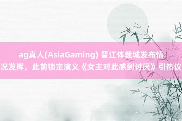 ag真人(AsiaGaming) 晋江体裁城发布情况发挥,此前锁定演义《女主对此感到讨厌》引热议