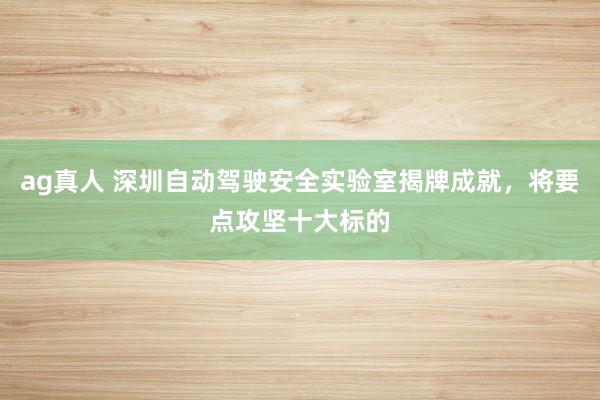 ag真人 深圳自动驾驶安全实验室揭牌成就,将要点攻坚十大标的